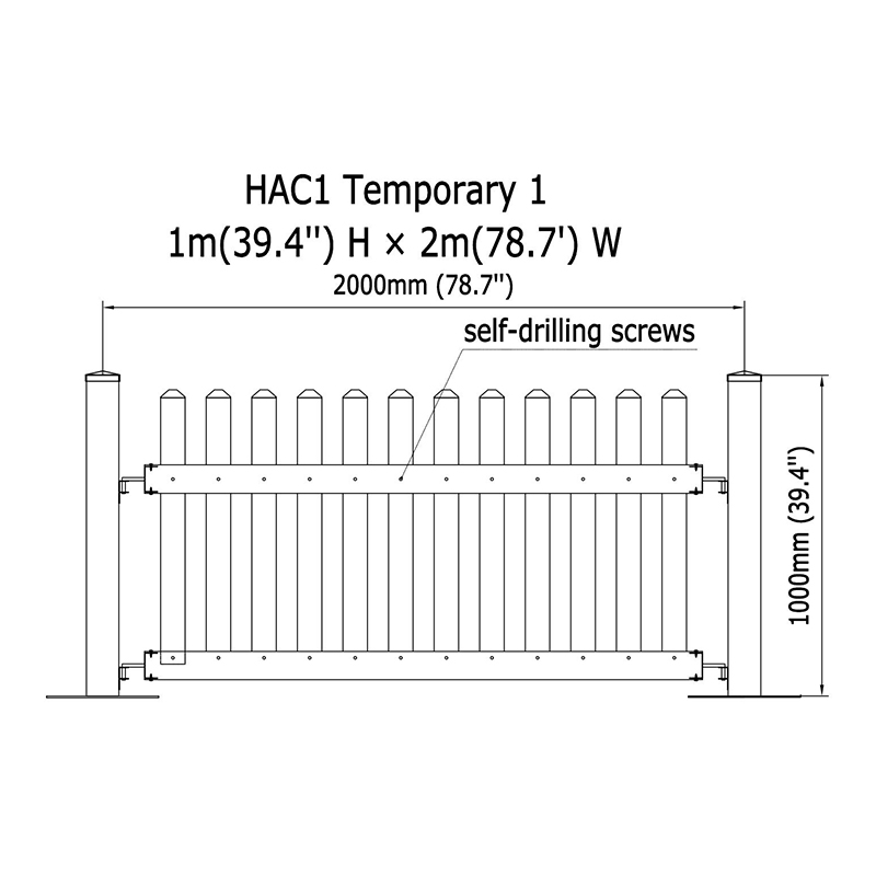 Unsere Zaunplatten sind mit einer Standardhöhe von 39 Zoll und einer Breite von 78 Zoll gebaut und sind vielseitig genug, um verschiedenen räumlichen Bedürfnissen gerecht zu werden. Jedes Panel misst 68 Zoll x 32 Zoll und enthält zwei Haken zur einfachen Installation und Stabilität. Mit einem 4 "x 4" x 39 "Pfosten, vor montiert mit einer robusten Stahlpostplatte, wird dieses Zaunsystem für Festigkeit und Haltbarkeit entwickelt, was es zu einer zuverlässigen Wahl für temporäre Setups macht.